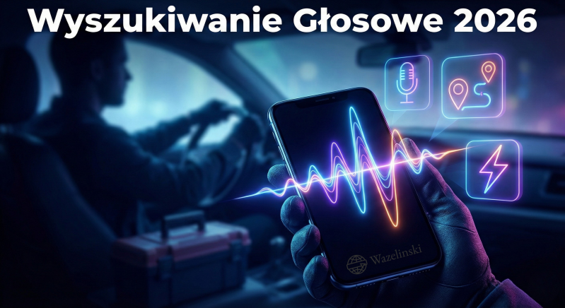 Jest rok 2026. Klawiatura w telefonie staje się drugoplanowa. Coraz więcej Twoich klientów szuka usług prowadząc samochód (Android Auto / Apple CarPlay) lub gotując obiady (Smart Speakers). Nie wpisują haseł. Zadają pytania.